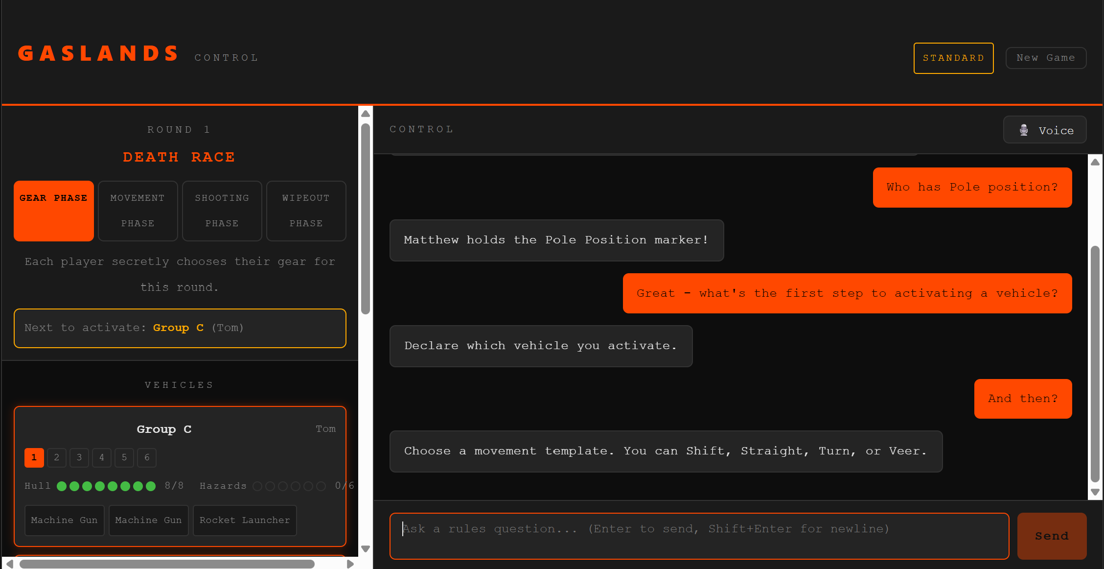 So, on Saturday morning I started throwing some ideas into Claude Code, the AI-assisted coding tool. What if we could have an AI games master that we could talk to. That recorded where we were at, acted as a verbal resource for the rules, and allowed us to just focus on the play. Even better, what if it took on a role from the game’s world? A sort of adjudicator in both function and tone?
